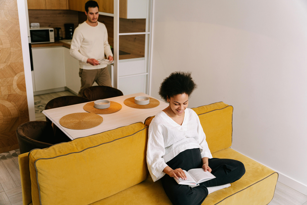 Stress can also make it hard for many pregnant women to get a good night’s sleep. Relaxation techniques, like deep breathing, can help your wife unwind and get her body ready for rest.